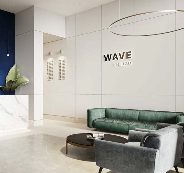 Лобби ЖК WAVE выполнены как полноценные общественные пространства с эстетичными интерьерами и функциональными зонами. Входные группы включают ресепшен, лаунж-зоны с Wi-Fi, колясочные и современные зоны корреспонденции.